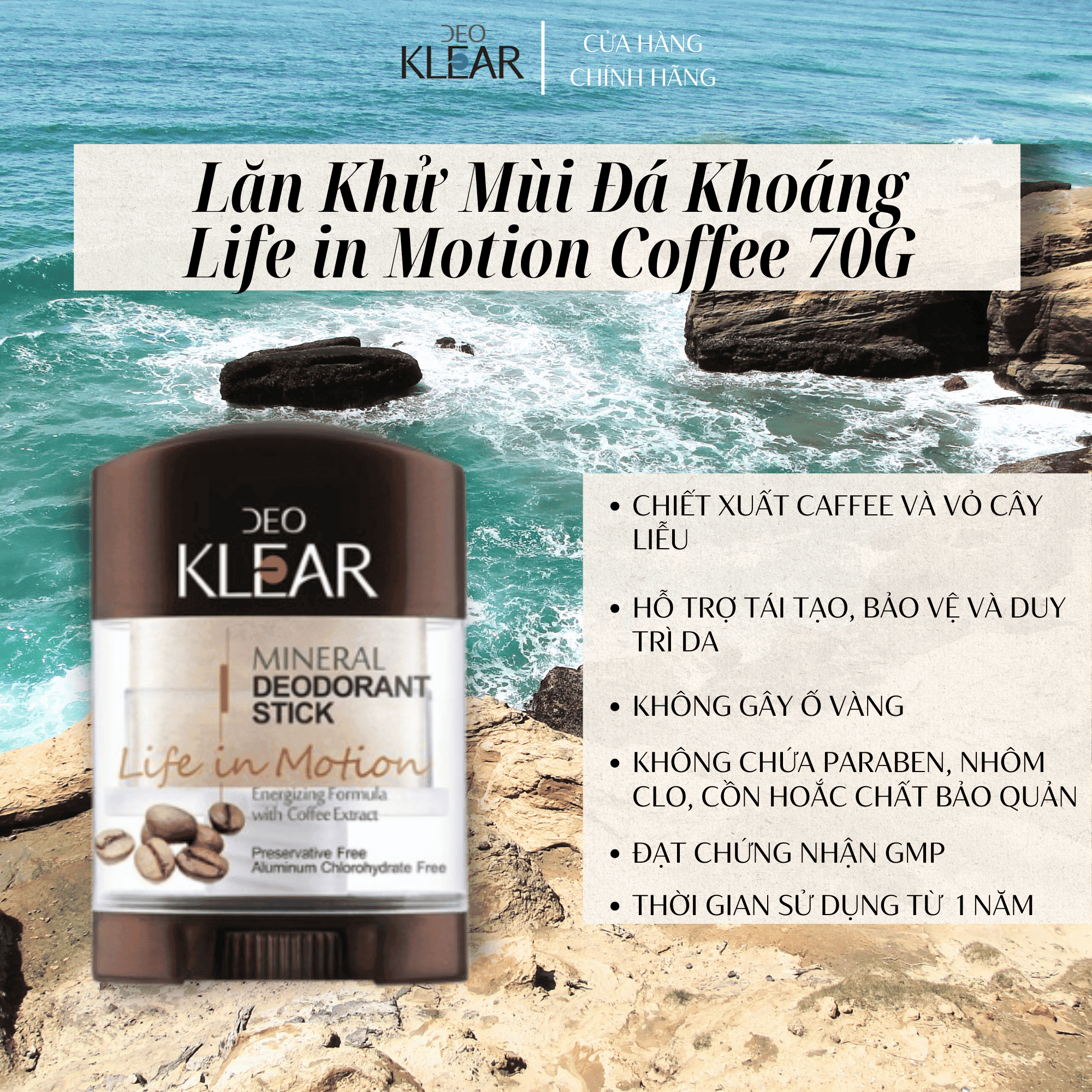 Lăn Khử Mùi Nam Đá Khoáng DeoKlear Life in Motion Coffee 70G – Tái Tạo & Bảo Vệ Da, Ngăn Mùi Từ Gốc